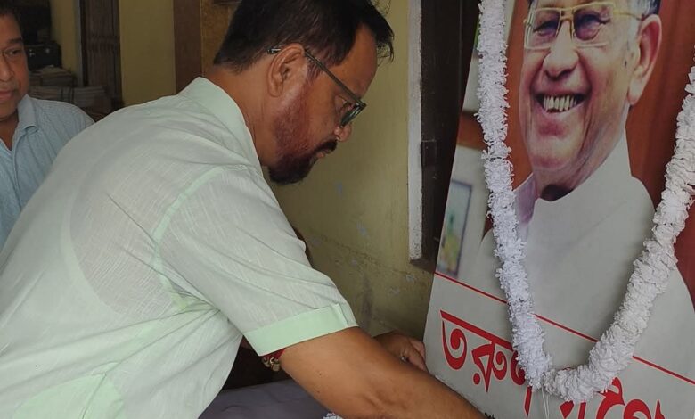 শ্রীভূমি, ১১ অক্টোবর : করিমগঞ্জ জেলা কংগ্রেস কার্যালয়ে শনিবার প্রয়াত প্রাক্তন মুখ্যমন্ত্রী তরুণ গগৈর জন্মদিন পালন করা হল। এদিন প্রথমে তাঁর প্রতিকৃতিতে মাল্যদান করেন জেলা কংগ্রেস সভাপতি তাপস পুরকায়স্থ, মিডিয়া চেয়ারম্যান শাহাদত আহমদ চৌধুরী, অহিরঞ্জন দে, অনুরাগ দত্ত, সন্দীপ নন্দী, মানিক চন্দ্র দে, নৃপেন্দ্র চন্দ্র দাস, ধ্রুবজ্যোতি দাস, গৌতম কর, নিরঞ্জন মালাকার প্রমুখ।