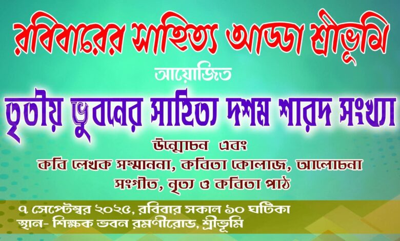 তৃতীয় ভুবনের সাহিত্য-এর পূজা সংখ্যা উন্মোচন ৭ সেপ্টেম্বর