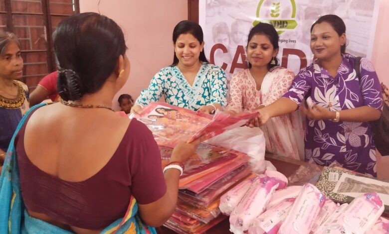 শ্রীভূমিতে শাড়ি ও স্যানিটারি প্যাড বিতরণ