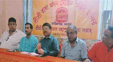 শ্রীশ্রী রাধা মদনমোহন জিউর মন্দির কমিটির পক্ষ থেকে সোমবার এক সাংবাদিক সম্মেলনে এই সূচির কথা জানান সম্পাদক গৌতম দাস। উপস্থিত ছিলেন মন্দির কমিটির কার্যকরী সভাপতি শ্যামল রায়, সহ-সভাপতি সুশীল কংস বণিক, ভাগবত সপ্তাহের আহ্বায়ক বাচ্চু দাস ও বিষ্ণুপদ নাগ।