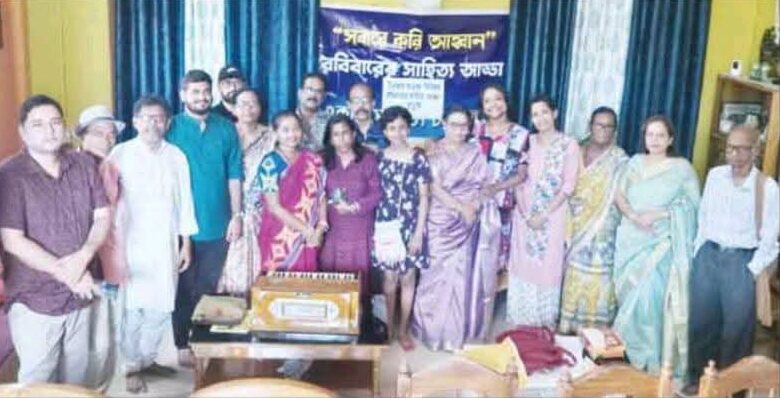 শ্রীভূমি, ১৩ অক্টোবর : রবিবারের সাহিত্য আড্ডার উদ্যোগে বিজয়া সম্মেলনের আয়োজন করা হয়। অনুষ্ঠানের শুরুতে সুদীপ ভট্টাচার্য মাতৃ বন্দনা পরিবেশন করেন৷